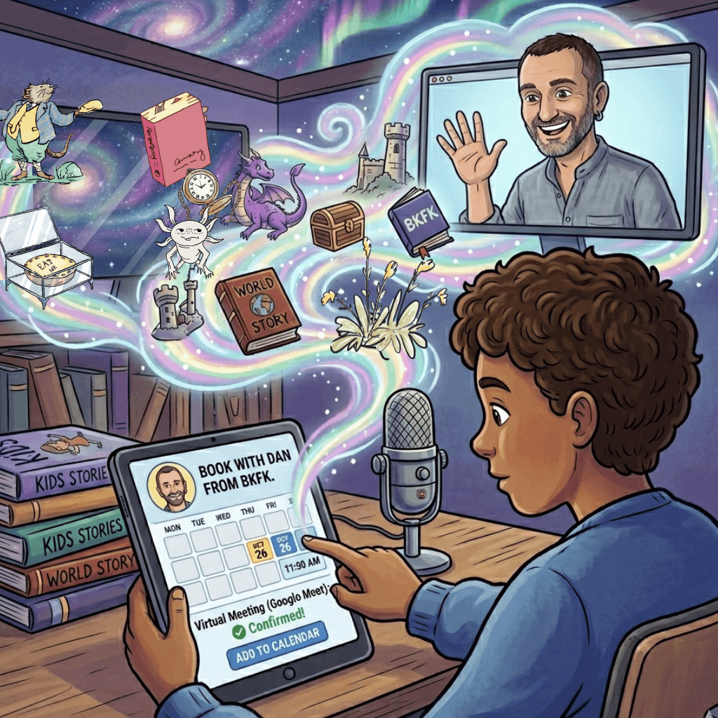You can now book a 30-minute recording slot directly with us! These fun sessions are perfect for kids who want to share their own stories, poems, or ideas on the show. We’re really looking forward to recording with you. Just select a date and time slot that that works for you!